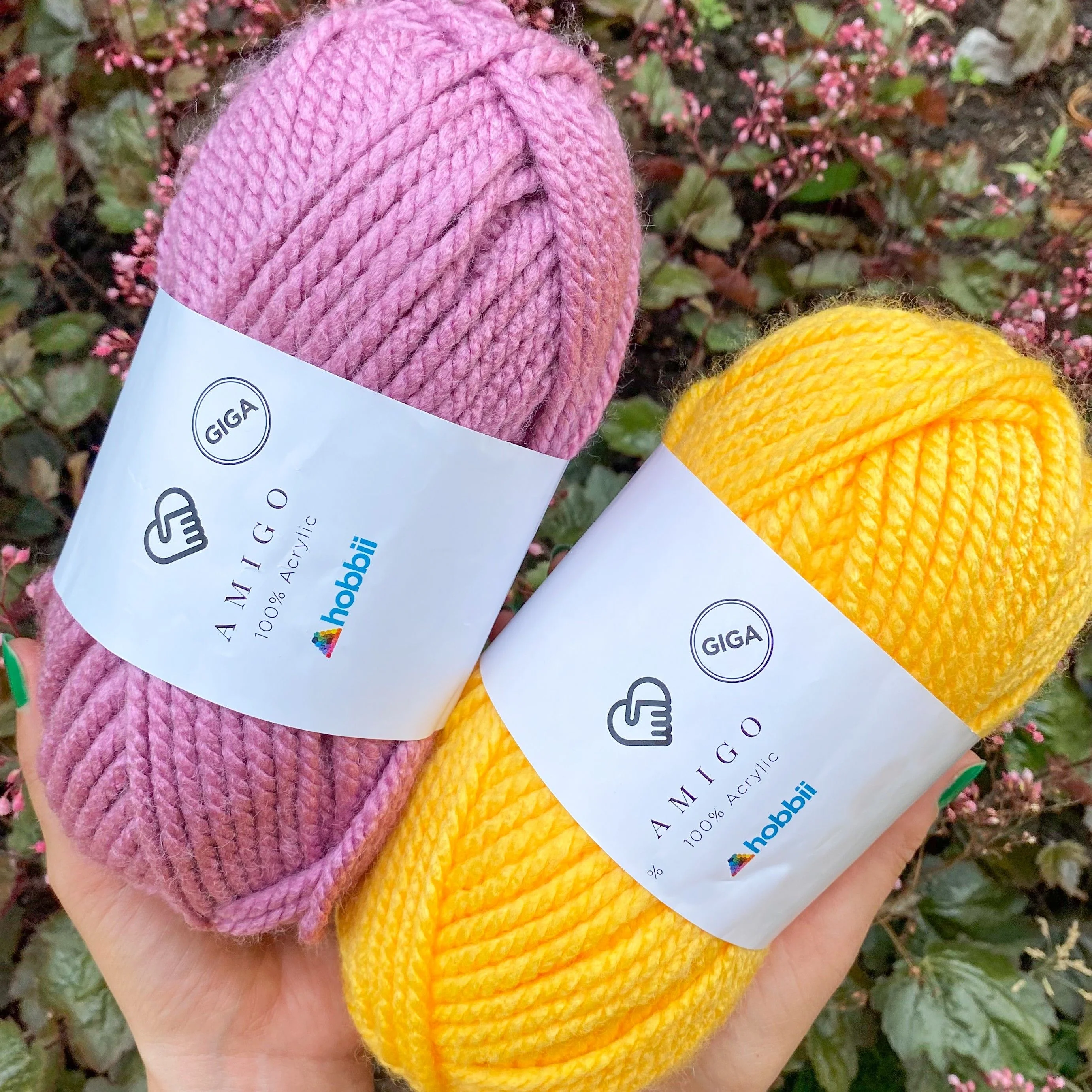 Amigo Giga is machine washable and easy to maintain. The thickness of the yarn lends itself to projects like pillows and blankets or things like chunky sweaters, soft hats, and other accessories. It’s also a great yarn to use if you want to avoid animal fibers.