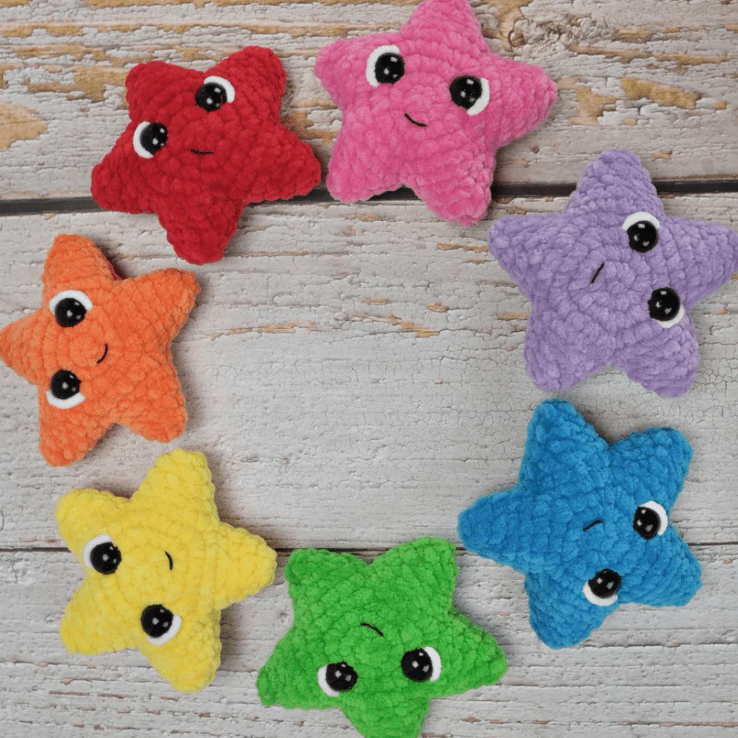 NO SEW PATTERN - Everything is crocheted together. Make your very own little Steven the Star. You can use him as a cute little toy, a Christmas Ornament, a starfish for your crocheted aquarium, put them on a string to decorate or whatever you prefer to use him for.