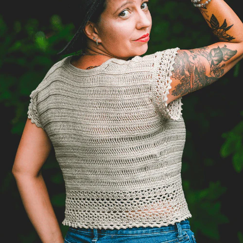 This size-inclusive top is made with a light sport (2) weight yarn from the top down, allowing you to try it on at multiple stages and stop at the length you like best.